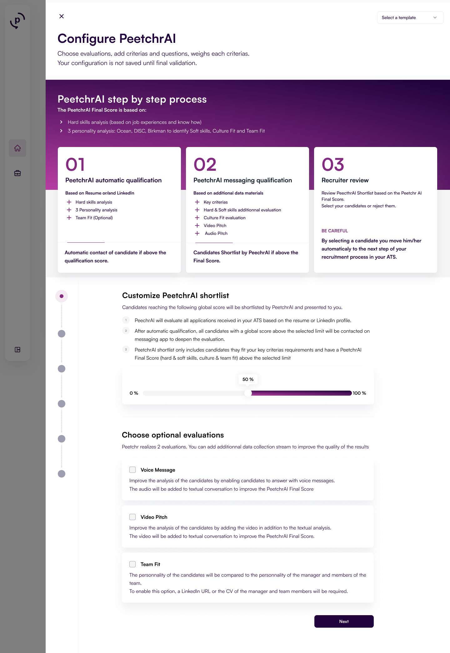 to « PeetchrAI is the talent intelligence solution that qualifies your candidates, so you only need to contact the top 5. »