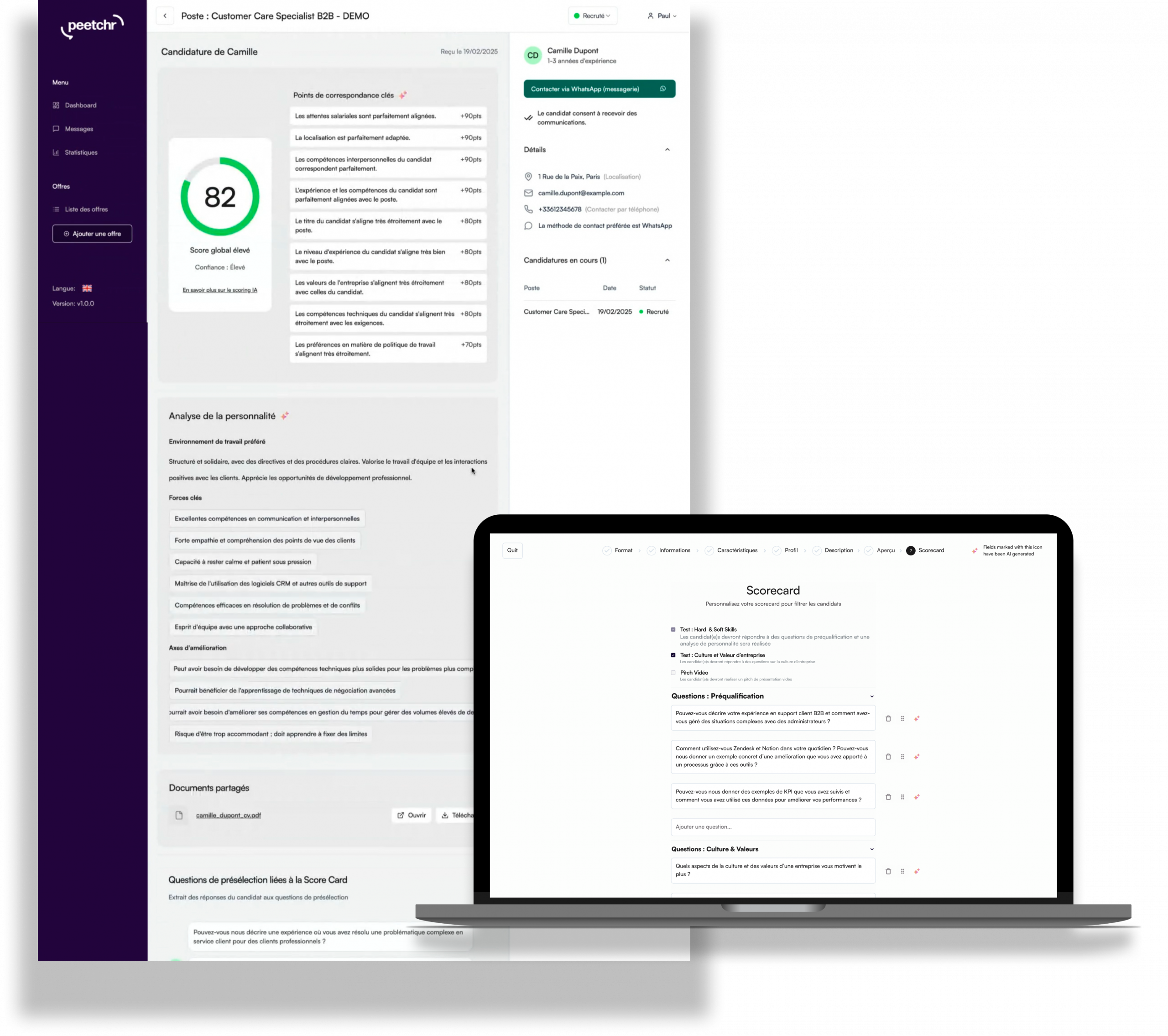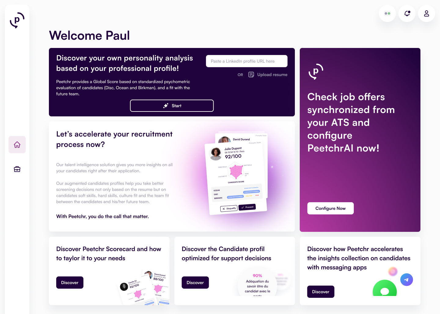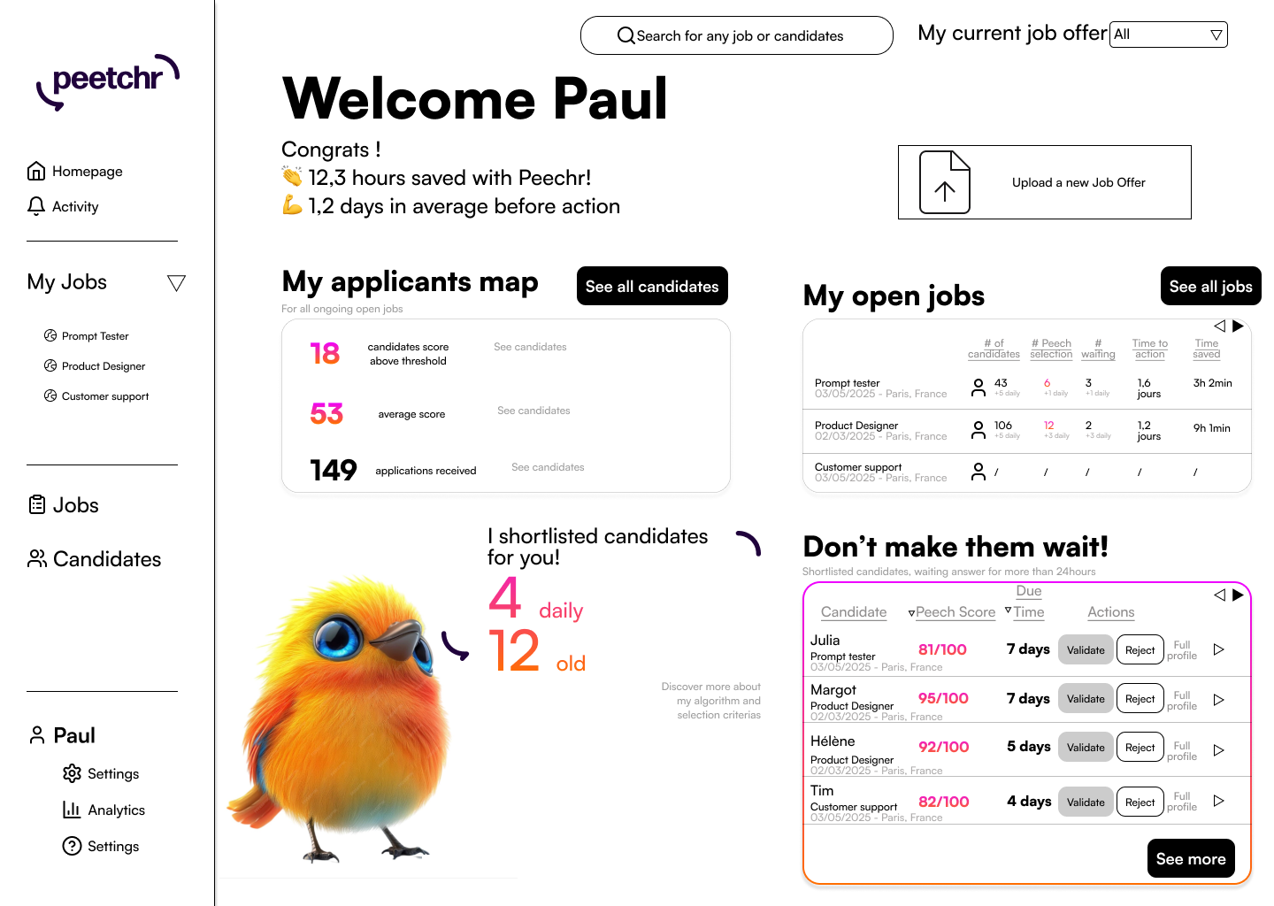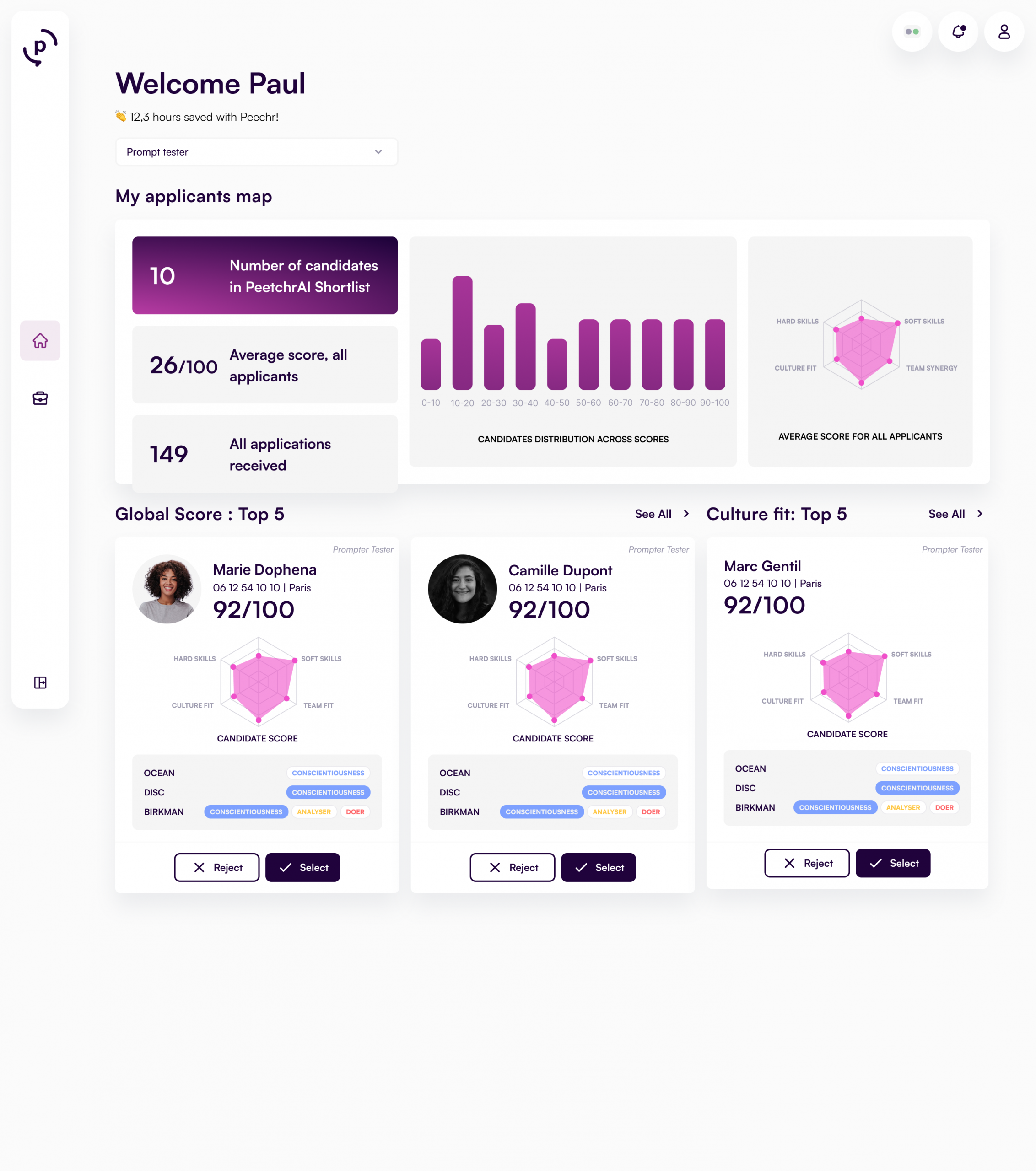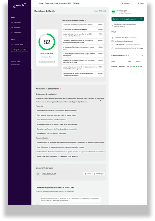to « PeetchrAI is the talent intelligence solution that qualifies your candidates, so you only need to contact the top 5. »