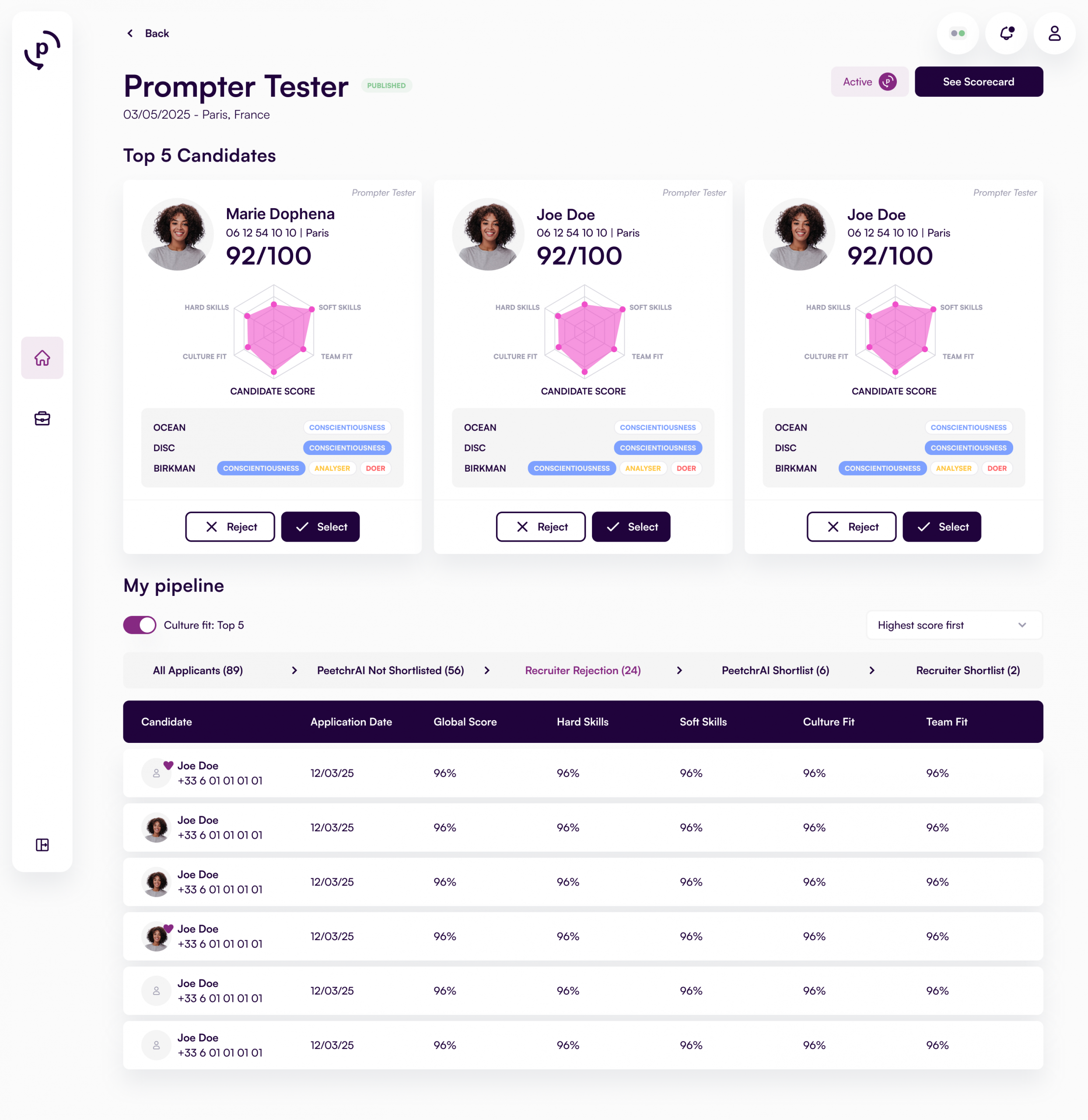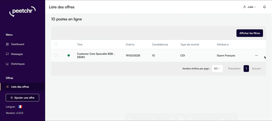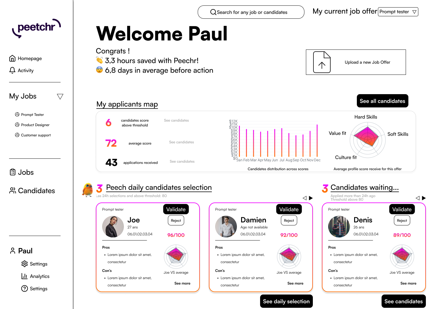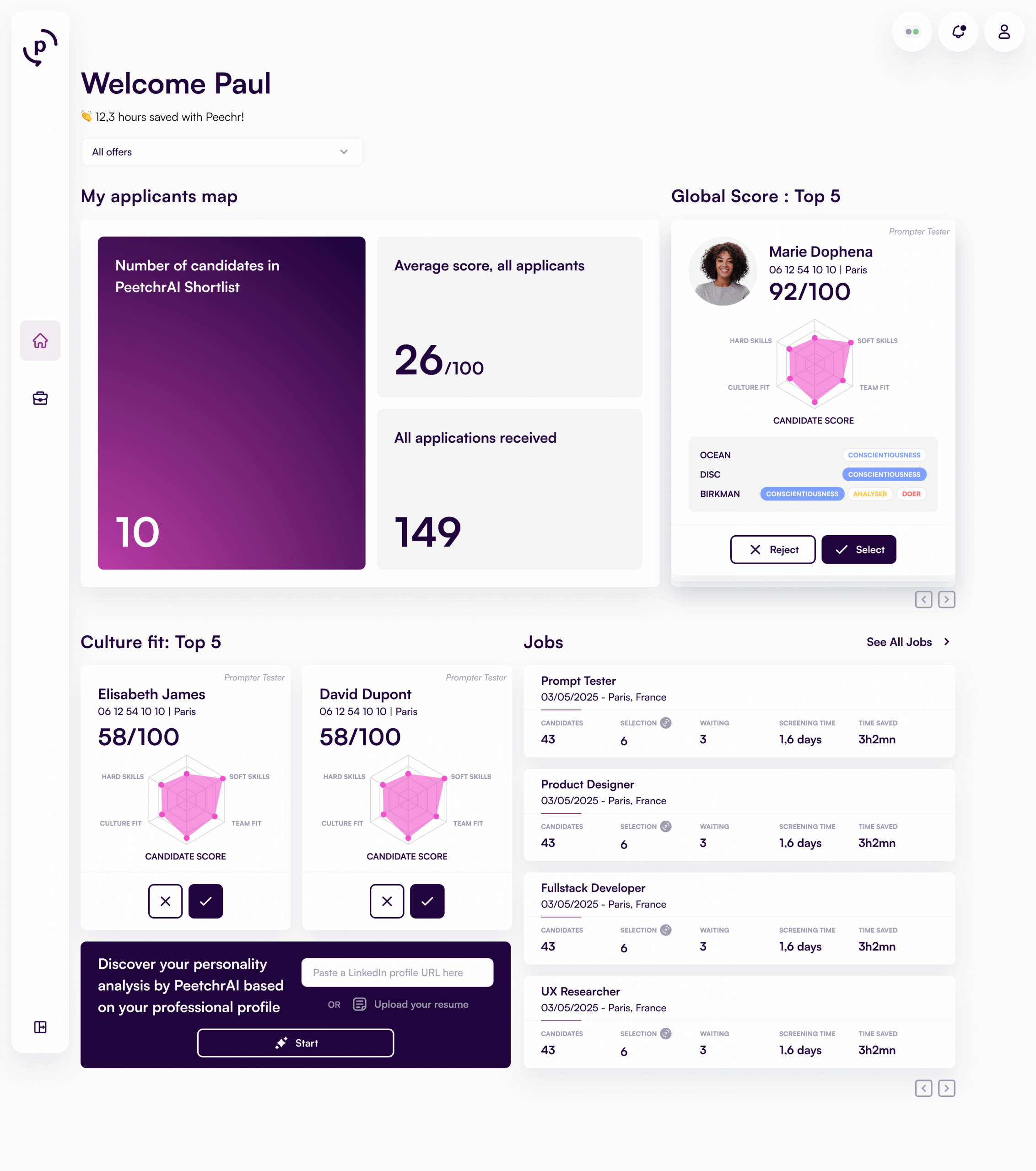 to « PeetchrAI is the talent intelligence solution that qualifies your candidates, so you only need to contact the top 5. »