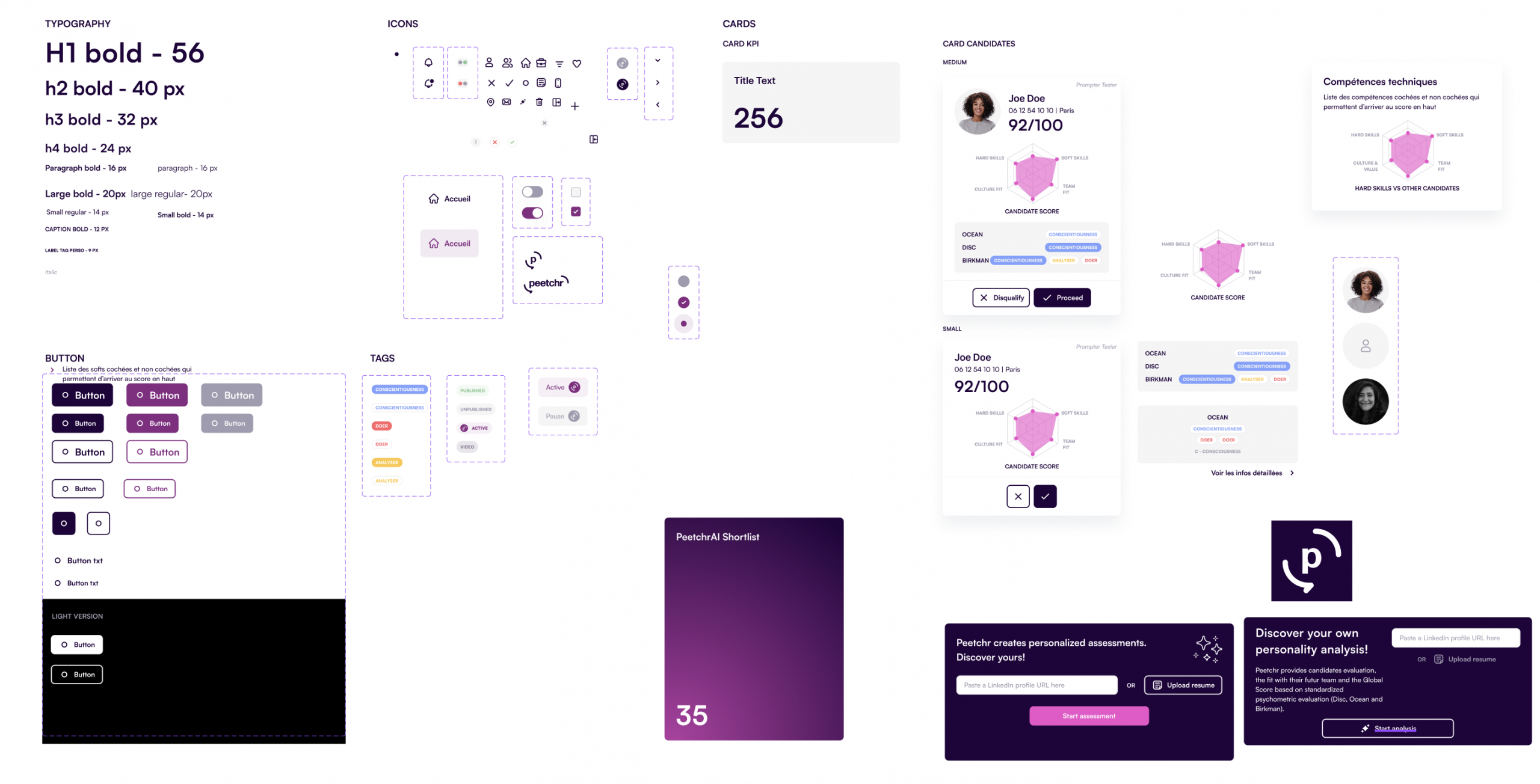 In collaboration with UI Designer Yaelle Cannamela, we developed a new brand identity that would feel both professional and human. It led us to create the first design system for Peetchr.